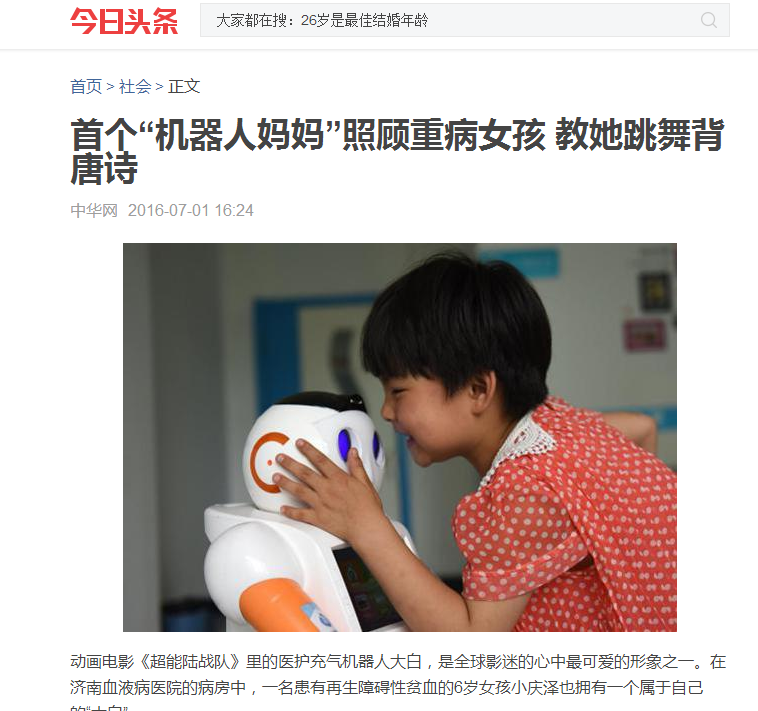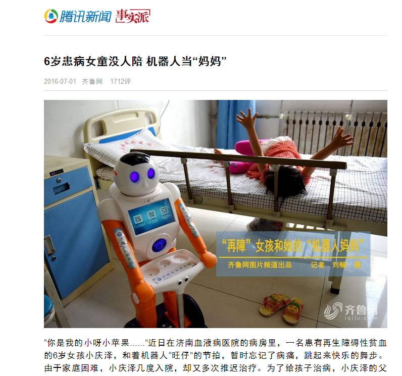 申庆泽,一个只有六岁的小女孩,因为患有再生障碍性贫血必须住院治疗,可是由于家庭困难,为了她的治疗费用爸爸必须外出打工,妈妈在老家一边打工一边照顾年迈病重的爷爷奶奶。医院带来的“机器人旺仔”成为唯一陪伴她的家人,和她一起唱歌、跳舞、做游戏。此事一经报道,各大媒体纷纷转载,希望能够帮助小庆泽筹得善款,帮助她尽早恢复健康。