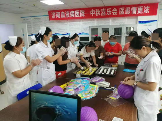 8.15中秋节是一家人团圆的日子,但对于生病住院治疗的患者们,却无法回家和自己的亲人团聚。为了让住院的病人感受到节日的氛围,品尝到象征团圆的月饼。济南血液病医院,在中秋节这天,特别举办了医患同庆的中秋喜乐会,邀患者及家属一起做月饼、制花灯。让住院治疗的患者,在医院里也能享受中秋佳节的欢乐,度过一个有意义的团圆节。医院24小时<在线咨询入口>,咨询电话:0531-86953333