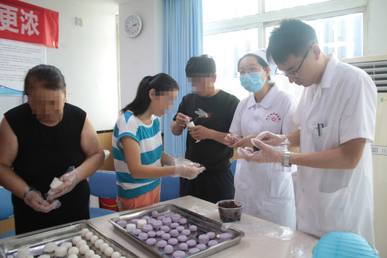 医生患者齐上阵,认真的制作出了一个又一个造型独特的月饼。多样的馅料,不拘一格的造型。DIY的过程好玩又好吃,大家忙得不亦热乎,办公室里充满了欢声笑语!医护人员们,耐心的为患者们讲解应该如何制作,大家也从一开始担心做不好,到后来逐渐变的熟练,更多的患者家属们纷纷参与进来,和医生比赛,看看谁做的月饼又快又好看!