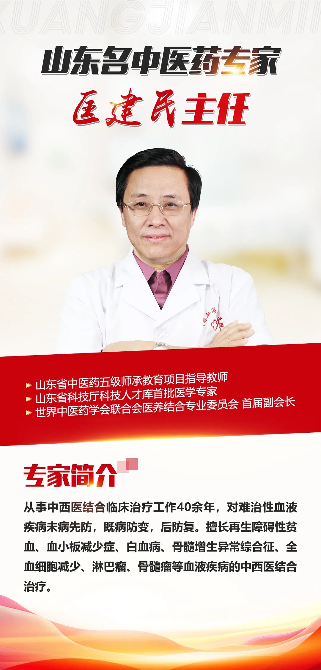 本次活动特邀五代中医世家史培泉主任前来坐诊,同时,我院享国务院特殊津贴专家葛林阜院长、山东名中医药专家匡建民主任、齐鲁医院张春青主任、省知名血液病专家时昊教授、李新刚主任、王卫东主任、马永全主任、董政军主任、王士奎主任、李兰芬主任等多位资深专家将共同参与。此次会诊不仅强调疾病的治疗,更重视患者的全面康复与生活质量的改善提升。各位专家将充分发挥中医的辨证施治与整体调理的优势,同时结合现代医学的精准诊断技术和先进治疗手段,为血液病患者提供更加个性化、高效的诊疗方案。