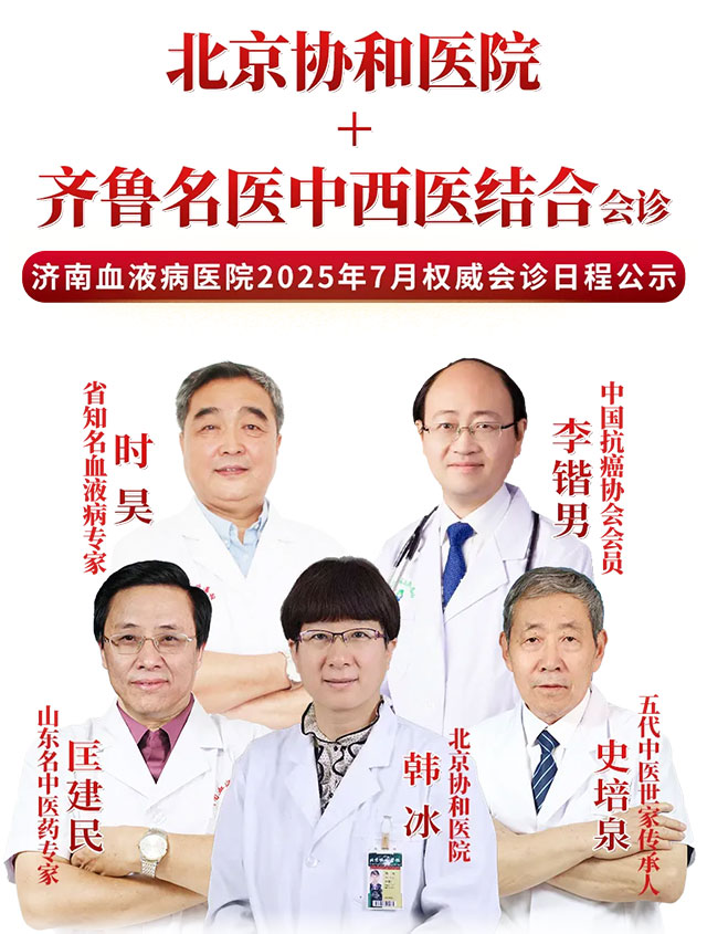 为满足广大血液病患者的诊疗需求,提供更高水平、更精准的医疗服务,济南血液病医院特联合北京、山东顶级医疗资源,于2025年7月4日至7月10日隆重举办“血液病专家联合会诊周”活动。本次会诊周汇聚了中西医结合、享誉国内及省内的顶尖血液病专家,旨在为疑难、复杂血液病患者提供多学科、个体化的权威诊疗方案,把握黄金治疗时机!